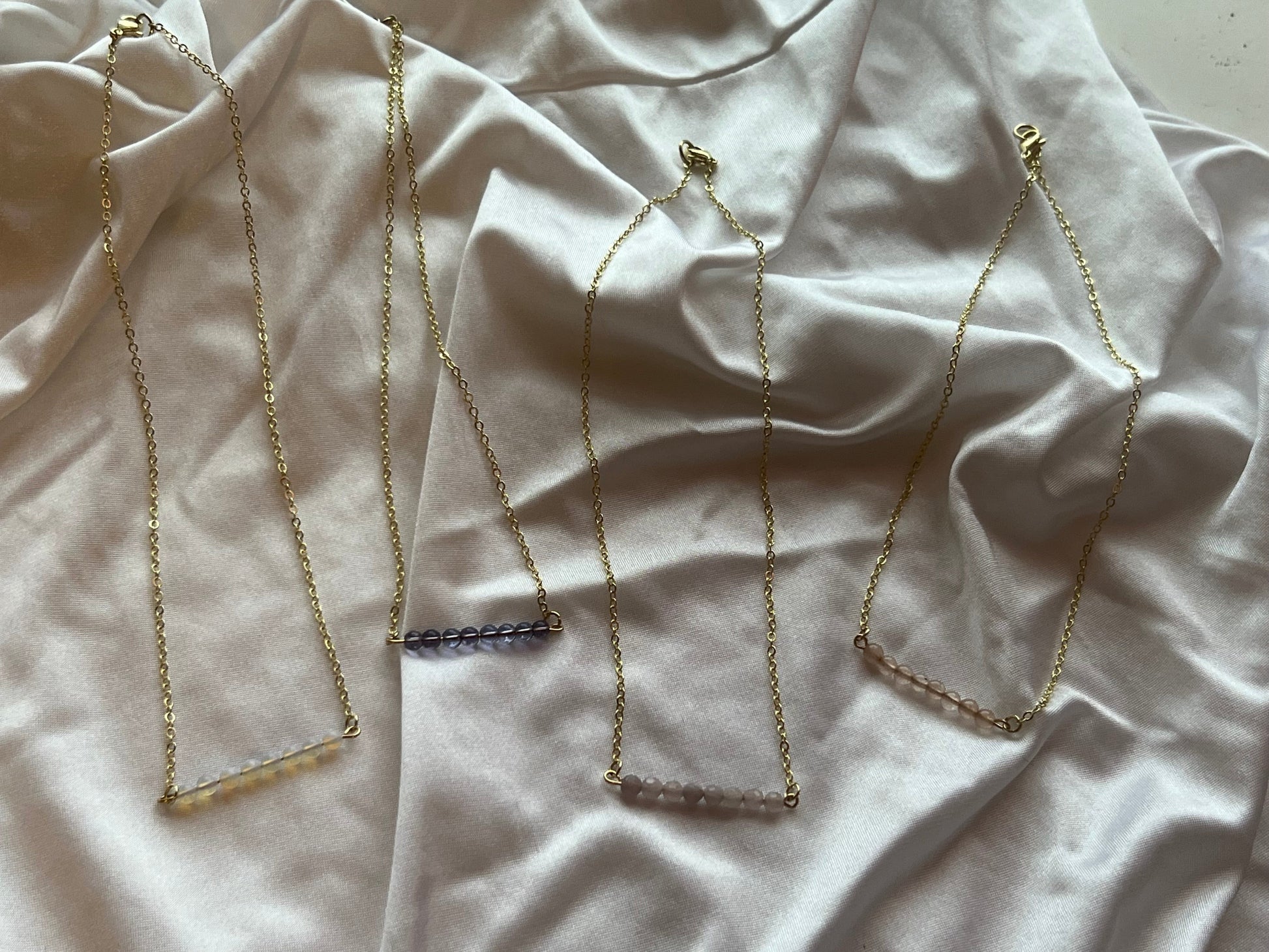 Beautify your look with these elegant, beaded bar necklaces. Each piece features a non-tarnish stainless steel chain, ethically sourced beads and a unique aesthetic. Made with care and attention to detail, these necklaces will elevate any look.
