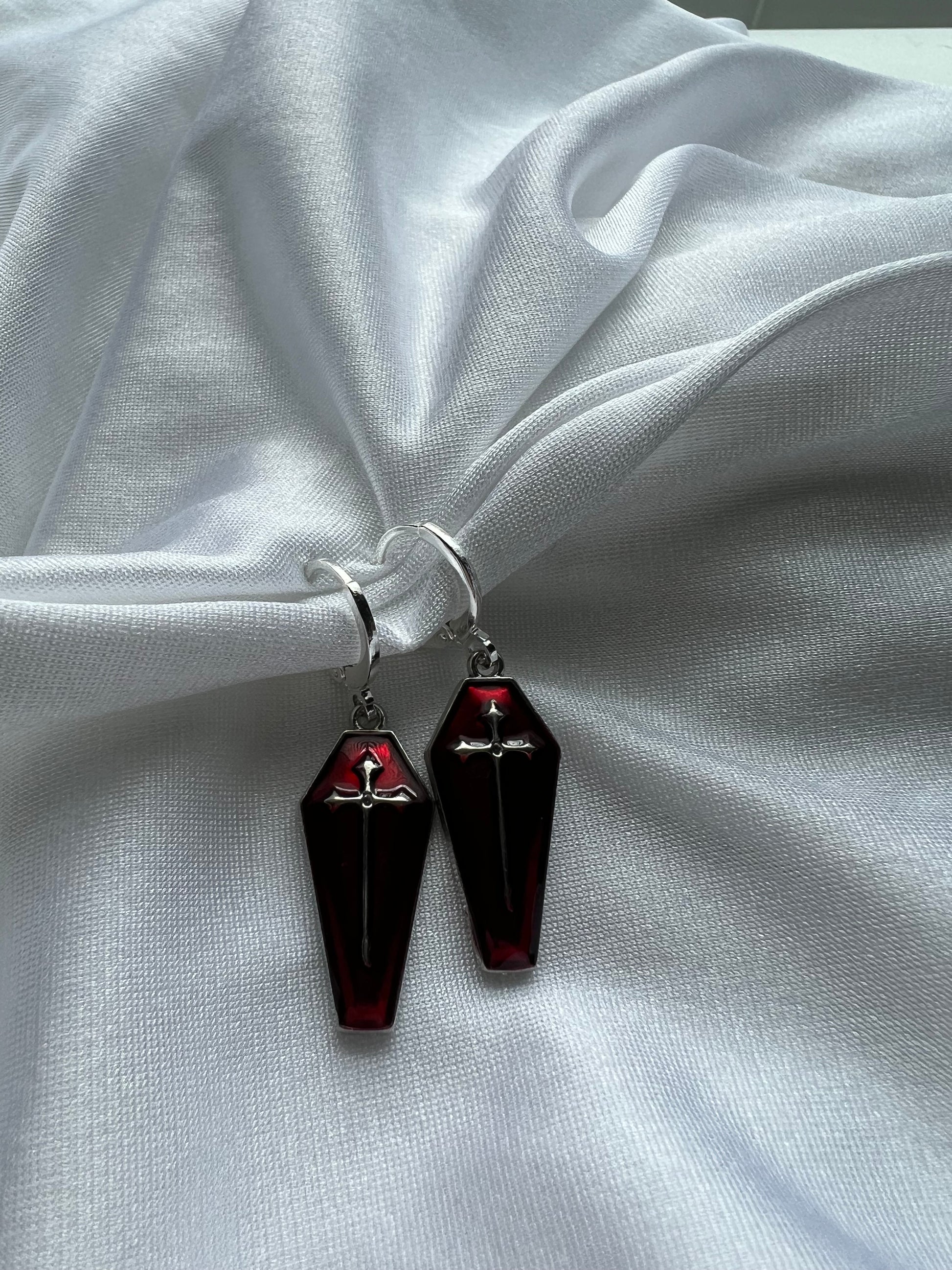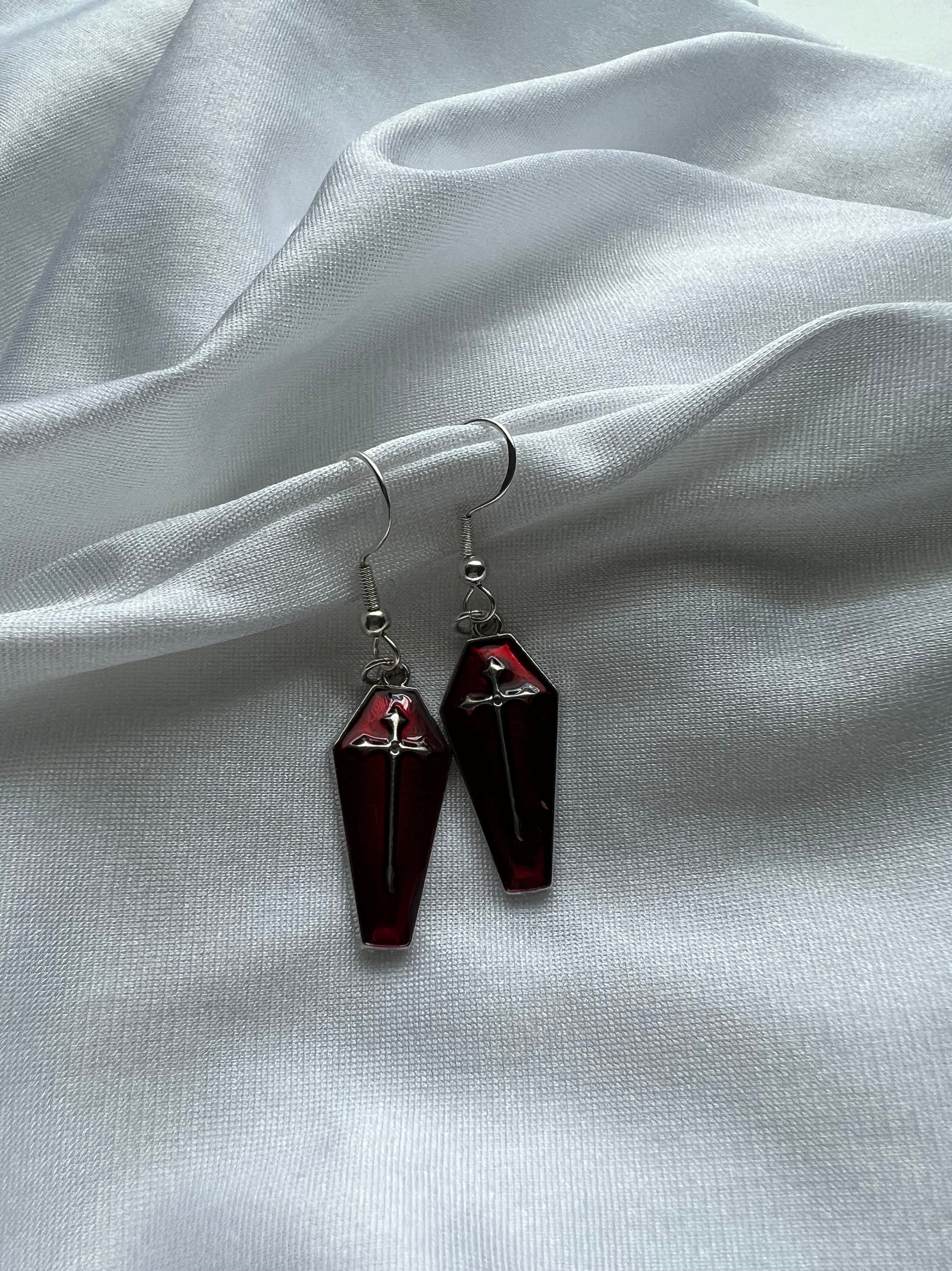 red coffin earrings