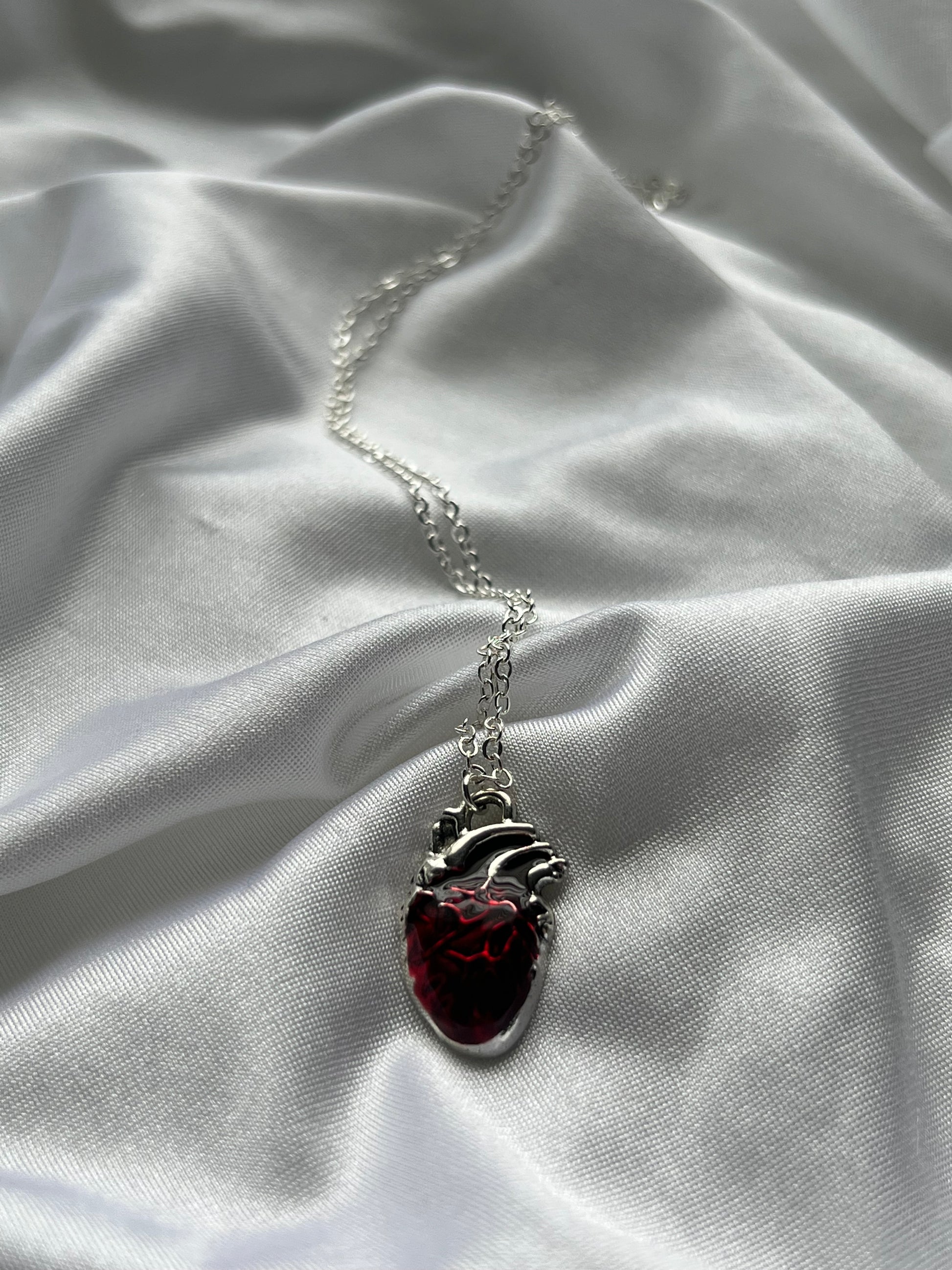 Designed with a solid brass base, this realistic heart necklace is silver plated and lead- and nickel-free. Its anti-tarnish finish ensures it stays shiny and beautiful, making it a unique and special accessory.